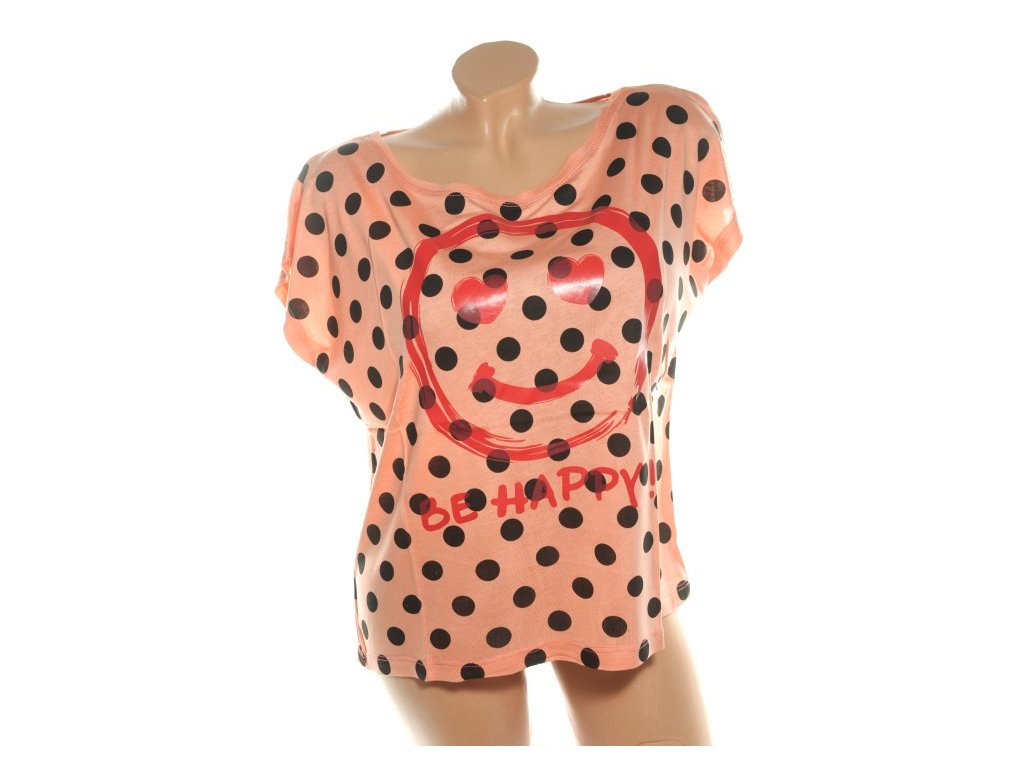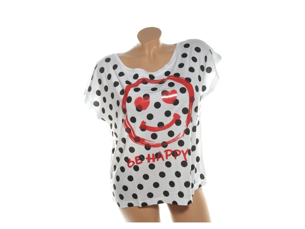 Dámske bodkované tričko s nápisom Be Happy. Krátky rukáv.
