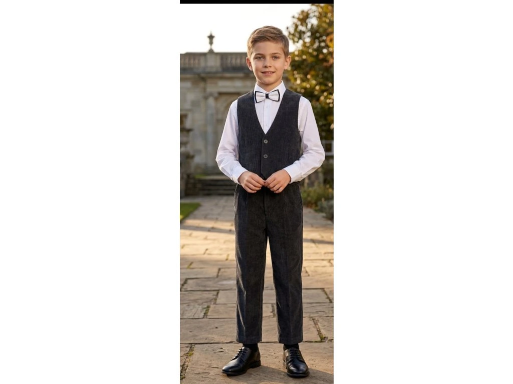 Objavte náš prémiový detský oblek ideálny pre chlapca na svadbu, krst či rodinnú oslavu.Velúrový materiál s jemnou textúrou dodáva luxusný vzhľad.Štýlová vesta a nohavice dokonale ladia. Komplet zahŕňa nohavice, vestu – všetko v jednom sete pre dokonalý outfit.