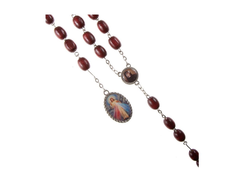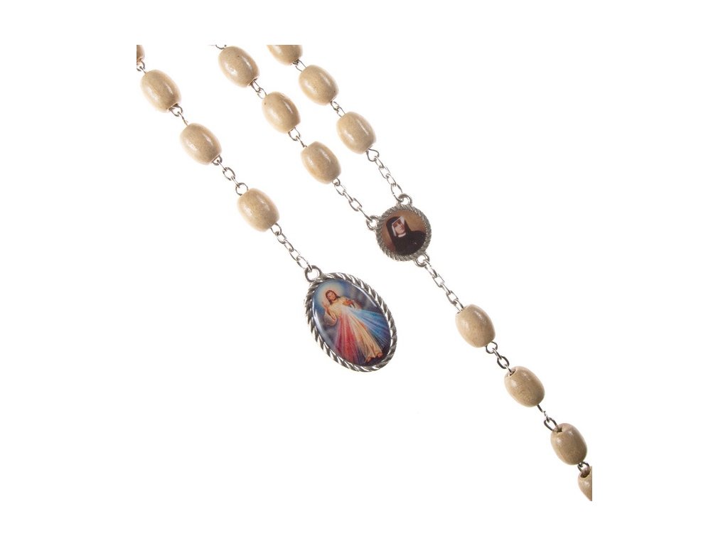 Drevený ruženec Milosrdný Ježiš,svätá Faustína Kowalská