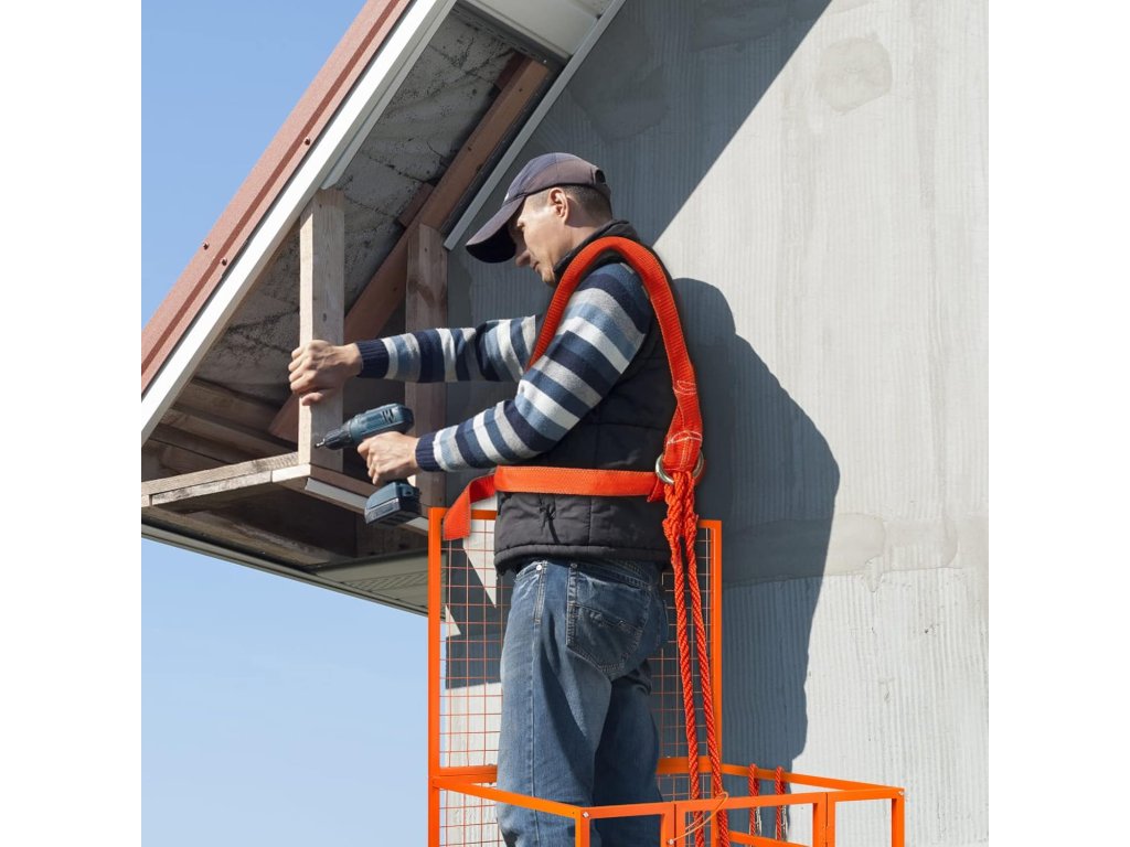 Obsahuje bezpečnostné pásy, ktoré môžu účinne zabrániť pádom a zraneniam. Ale i kovový kôš na náradie.