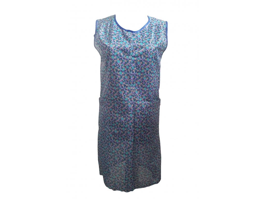 Šatová zástera sa vpredu zapína na gombíky pre jednoduché obliekanie a vyzliekanie.
